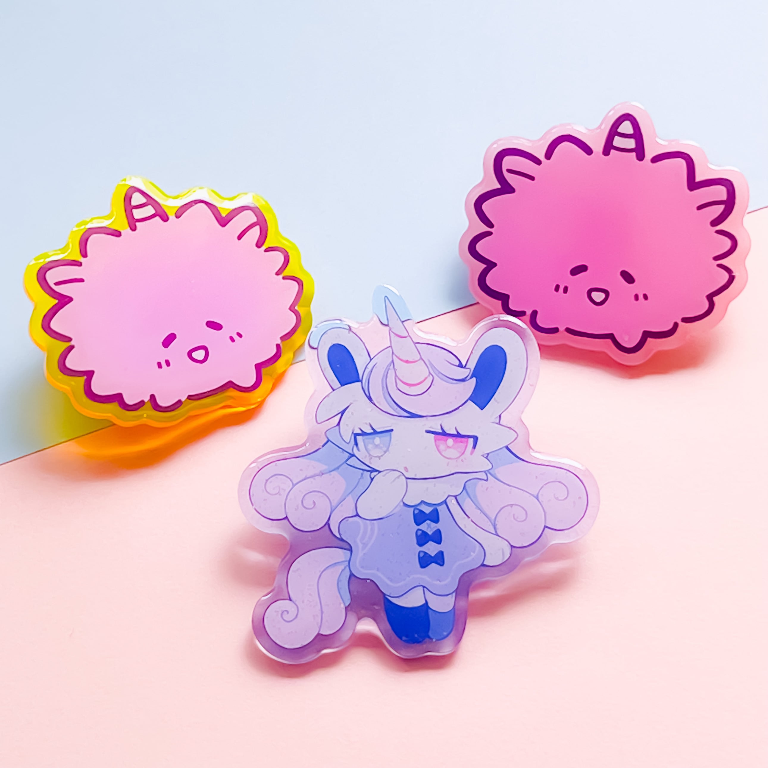 ドーミング加工付きのカラーアクリルピンバッジです。
